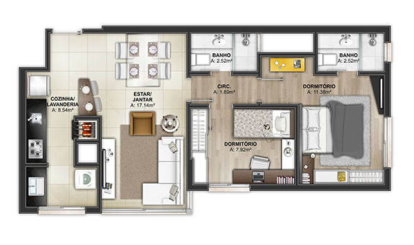 1 ou 2 vagas na garagem - Apartamentos de 2 dormitório